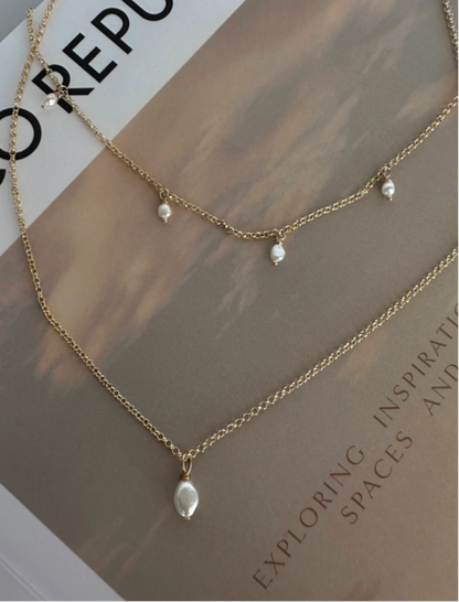 This adjustable chain measures 550mm. Wavy Pearl Pendant's have a length of 5mm-12mm.