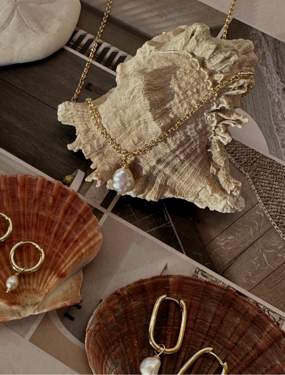 This Wavy Pearl Pendant is designed with every ocean lover in mind. Crafted from freshwater pearls, this necklace captures the essence of the ocean's natural beauty.
